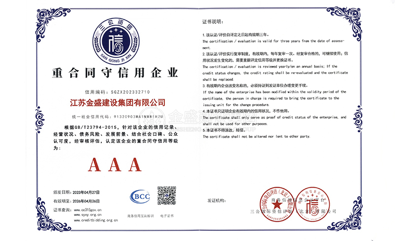 先后被我省市命名為"重合同,守信用"企業(yè),"AAA"級施工單位和 施工單位